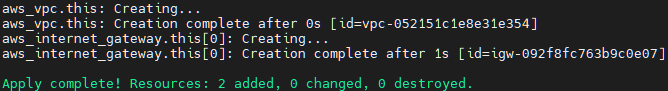 AWS Console에서도 정상적으로 VPC, IGW가 생성된걸 볼 수 있다.