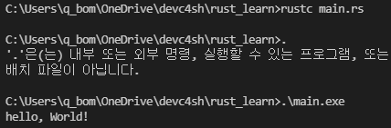 • rustc를 통해 코드를 작성하고 실행