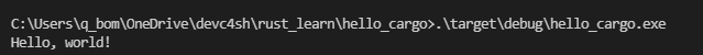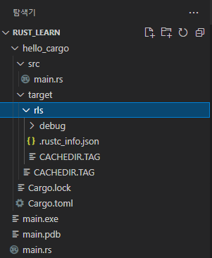 위의 명령어를 입력하면 현재 디렉토리에 생성되는게 아닌 target\debug\hello_cargo에 실행 파일이 exe로 생성된다.