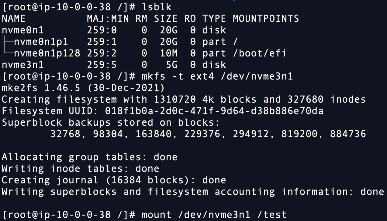 mkfs -t ext4 /dev/nvme1n1