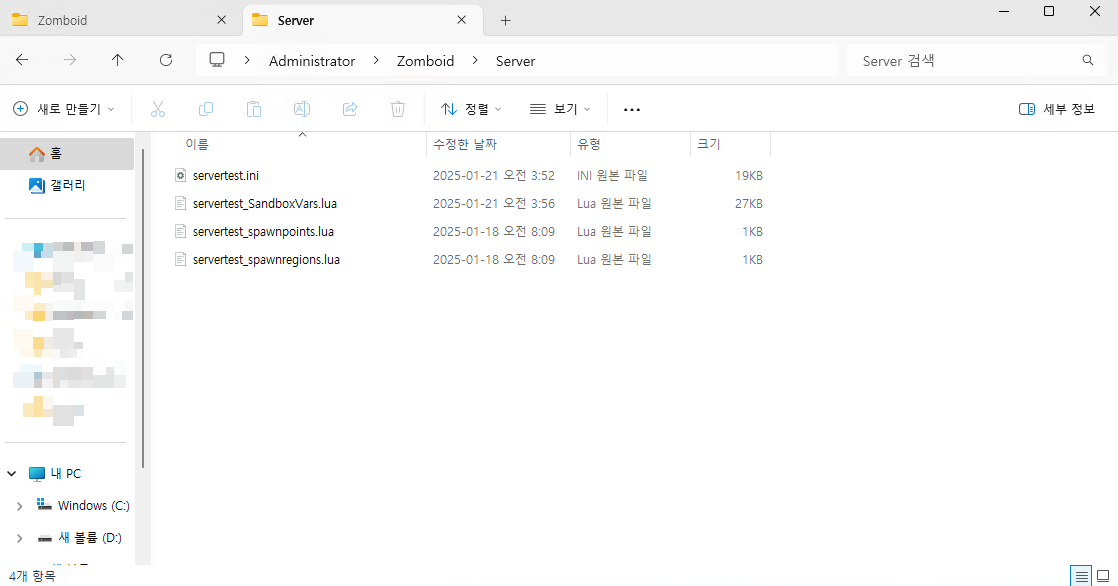 서버가 정상적으로 구동되었다면 사용자 경로에 Zomboid라는 폴더가 생성된다.