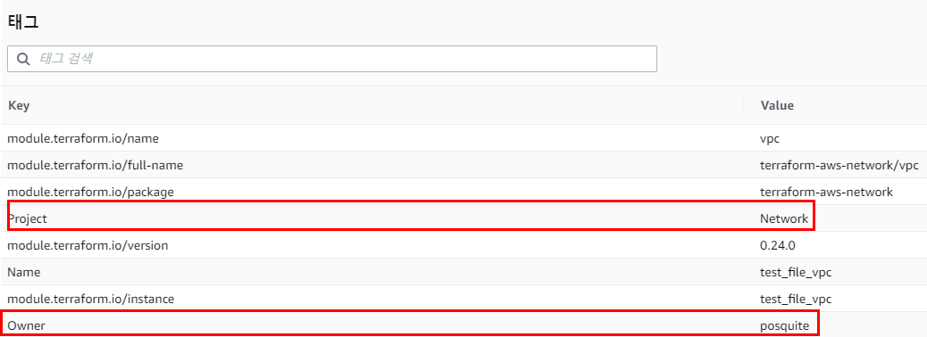 locals { common_tags = { Project = "Network" Owner = "posquite" }tags 수정